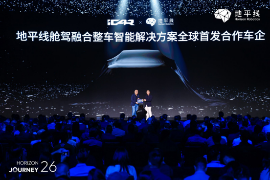 在2026地平线年度产品技术发布会上,iCAR品牌事业部总经理苏峻受邀登台,并与地平线创始人兼CEO余凯共同宣布,iCAR将成为地平线舱驾融合整车智能解决方案的全球首发合作车企。